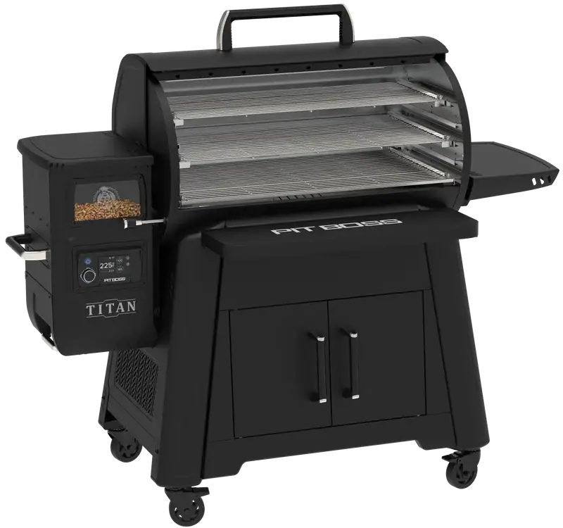 Lerne den neuesten Zugang der Pit Boss® Competition Series kennen: den Titan, exklusiv bei Academy Sports & Outdoors. Mit über 10.474 cm² Grillfläche und einem 18-kg-Pelletbehälter kannst du problemlos für Freunde oder eine ganze Gruppe kochen. Der PB1600CST ist mit den innovativsten und modernsten Pit Boss Features ausgestattet. Dazu gehört ein 10,9 cm großes Touchscreen-Bedienfeld, mit dem du die volle Kontrolle über deinen Grill hast.